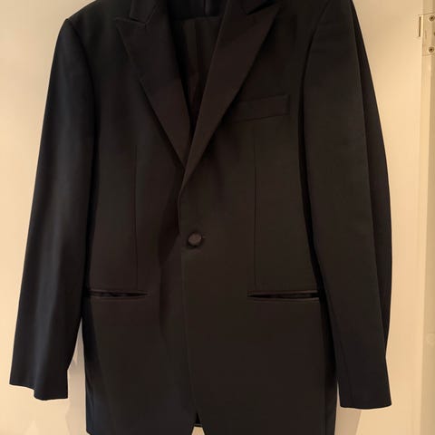 Selger en klassisk svart blazer og vest fra J.Lindeberg Stockholm, begge fra tidlig 2000-tall (ca. 2003–2004). Tidløs og stilren passform med signaturdetaljer fra Lindeberg.