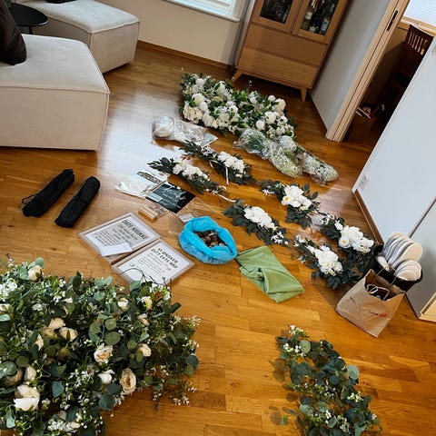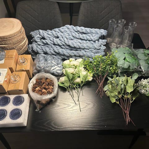 Diverse pynt og utstyr brukt til ett bryllup sommeren 2025.