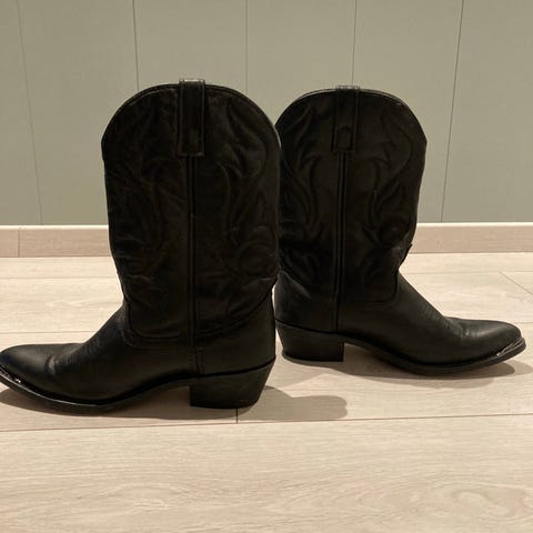 Flotte cowboystøvler , svart/mørk brun str 10 D , som tilsvarer 43. De er pent brukt.