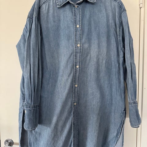 Oversized denimskjorte fra Katrine Uri størrelse 36. Svært lite brukt. Kan hentes i Florø eller sendes mot at kjøper betaler porto. Kan vipse direkte eller benytte Fiksferdig.