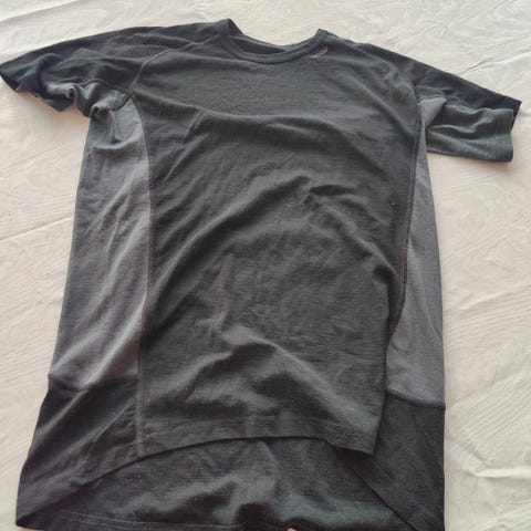 Aklima Woolshell joggejakke i 54 % merinoull. Noe slitasje langs reflekskant ved glidelås.