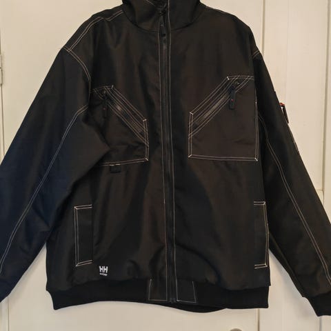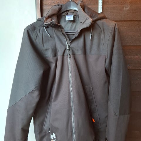 Arbeidsjakke fra bluewear. Strl S, men god og romslig i størrelsen. Ett bruksmerke foran på jakken(se bilde) ellers er den hel og pen uten merker. Snøring nederst på jakken og ved hetten. Det er også avtakbar hette. God og varm jakke til utevær.