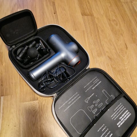 Den kommer med lader og forskjellige former som du kan bytte på, du kan også justere styrker på den, den hjelper veldig til å fikse ubehagelige steder o kroppen og strekk, brukes for å tilfredsstille alle behov