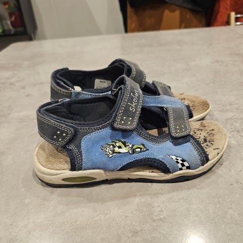 Skofus blinke sandaler i str 34. Mørk blå/grå.