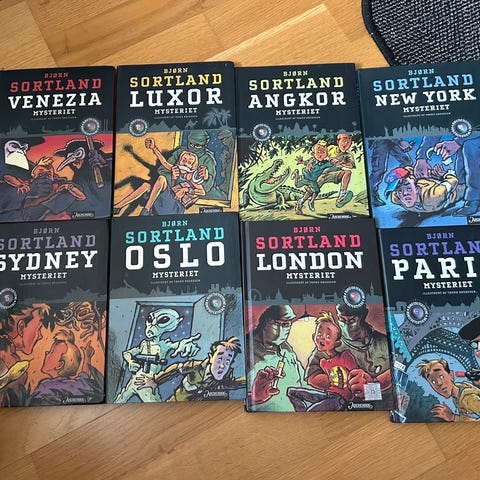 Selger 6 bøker i serien om Kunstnerdetektivene av Bjørn Sortland. Pris pr stk kr 50,-. Bøkene er som nye, kan sendes med Fiks ferdig.