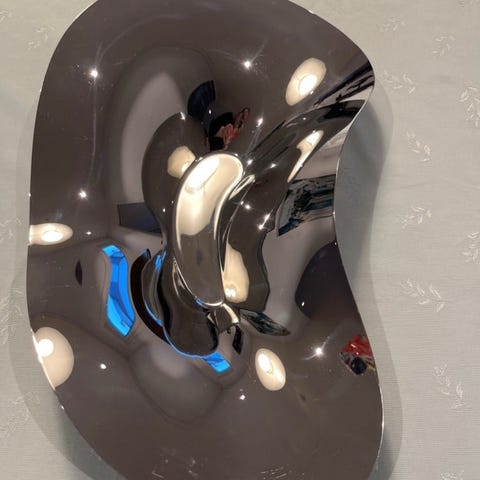 Lekker serveringsfat 2 stk . Alvar Aalto rustfritt fat. 2000 for begge. 1200 pr stk