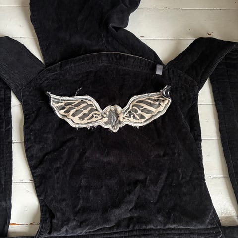 Veldig behagelig å bæra sjølv større barn fordi dei blir godt knytte til kroppen. (Barnet på bileta er 5 år)