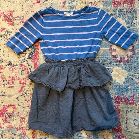 Fantastisk og lett sommerkjole fra amerikanske J Crews barnekolleksjon (Crew cuts) i str 4. Kjøpt ny av oss og kjolen er lite brukt av våre tvillinger. Merk at det har kommet en liten flekk foran som jeg først oppdaget da jeg tok bilder og ikke har forsøkt å fjerne. Selges derfor til 150kr