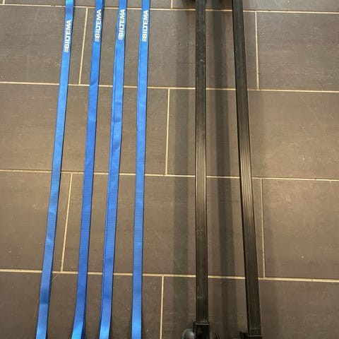 Takstativ "Mont Blanc" som er i god stand. effektiv transport av last på bilens tak. Passer til de fleste bilmodeller med takrails.