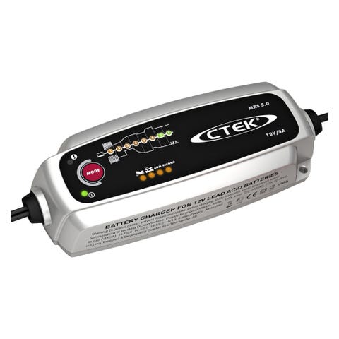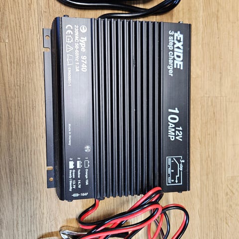 Brukervennlig 12 V-batterilader for bil, bot, campingbil osv, laderen er utstyrt med rekondisjonering og justerbar ladestrøm maks. 10 A.