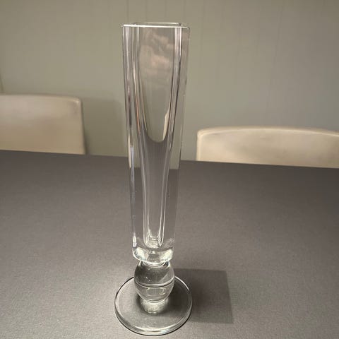Glass høy vase i transparent farge. Perfekt for dekorasjon eller blomsteroppsatser. Laget av solid glassmateriale for et stilrent utseende.