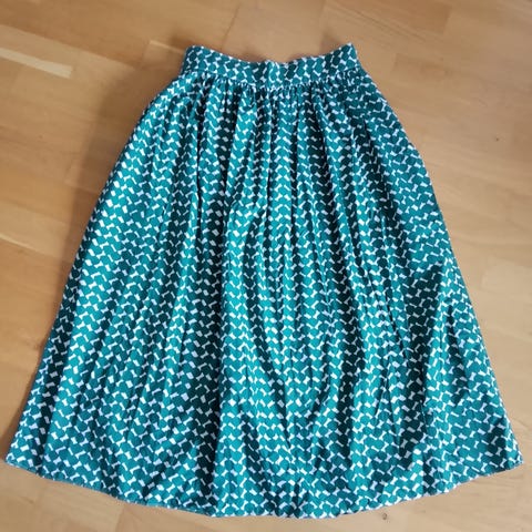 Nydelig skjørt og fin print med noe sølv i trykket.