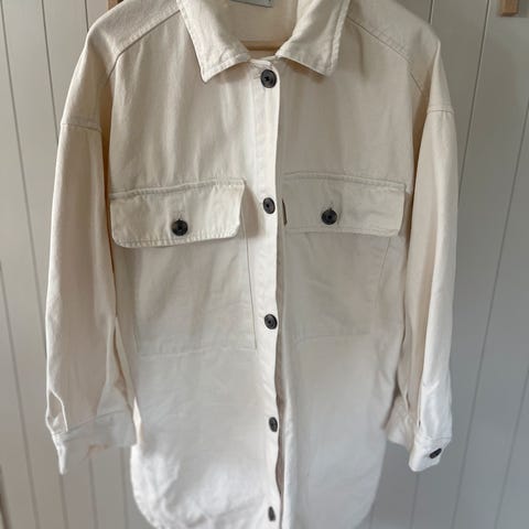 Oversized skjortejakke fra Bik Bok i str. S. Lys beige/ecru. Knytning i livet som kan fjernes.