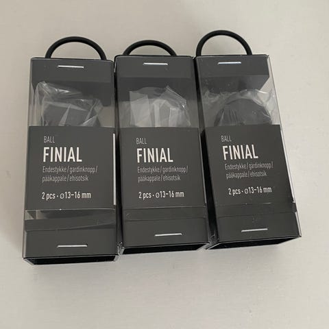 Fine kuleformet med mønster endestykker 2 pakk til gardinstang selges.