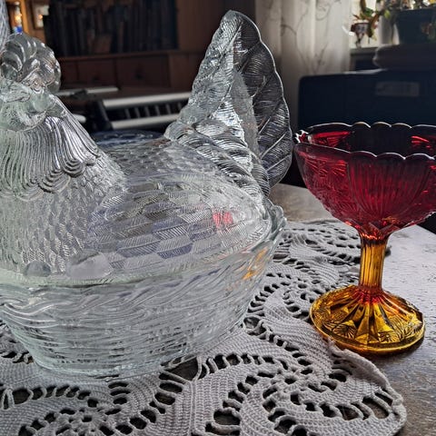 Jeg har samlet glass i mange mange år. Her et lite knippe polsk glass fra Zabkowice. Nydelige vakre ting💙🩵 Jeg har i tillegg ref bilder en liten spirelli med etikett på 🧡🍁🍂
