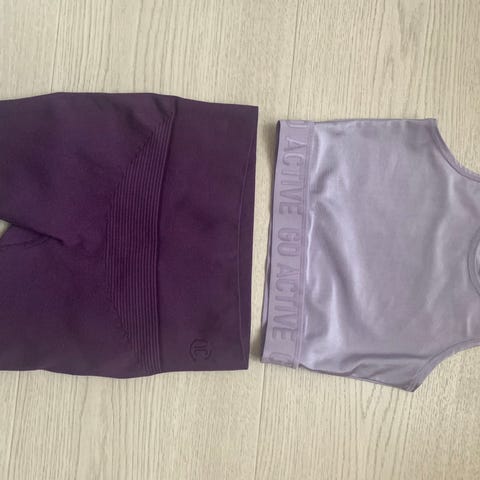 Jeg har tatt av lappene på shortsen og sports bh men jeg likte dessverre ikke helt hvordan det satt på meg så ingenting er brukt.