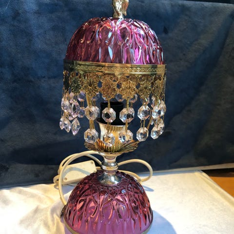 Gammel krystall bordlampe.