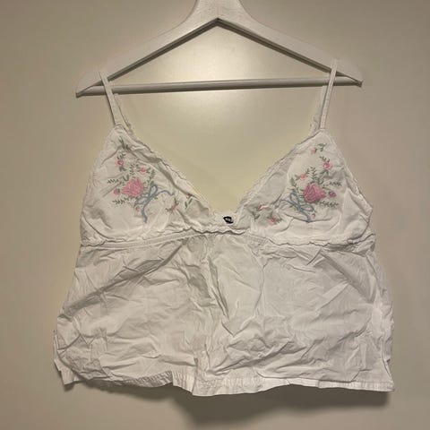 #blondetopp #søt #blondedetaljer #søt #lacetop #tanktop #tanktopp #søttopp #h&m #sort #coquettetopp hm svart black tie top embroidery broderi