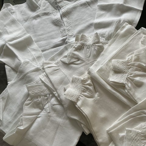 Selger en vakker og ny bunadsskjorte i 100 % lin med påsydde blonder.