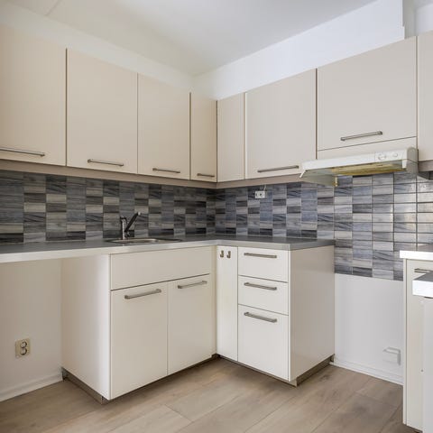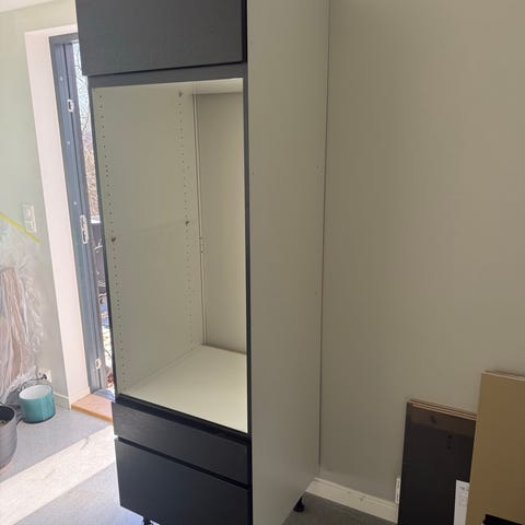 Selger kjøkkenskap fra Kvik Ombra Green. Kjøkkenet er fra 2023.
