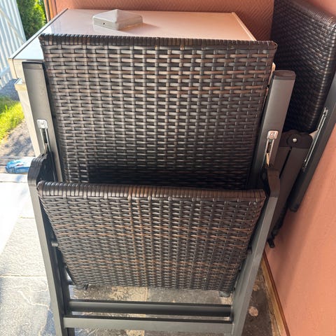 Selger disse 4 stolene med bord med stort potensialet. Har hatt store planer om å pusse bort rust og lakke de igjen, men har andre ting å prioritere. Derfor selges de.