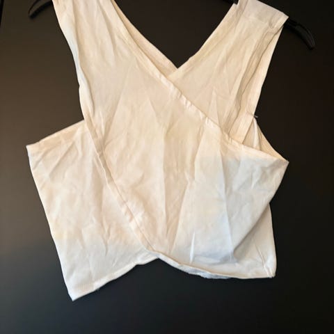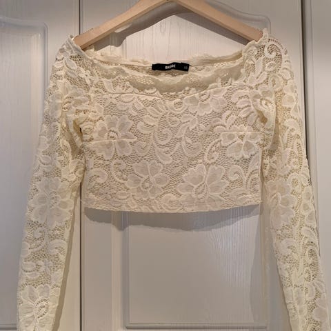 Kort hvit blondetopp i str s. Gjennomsiktig bak.