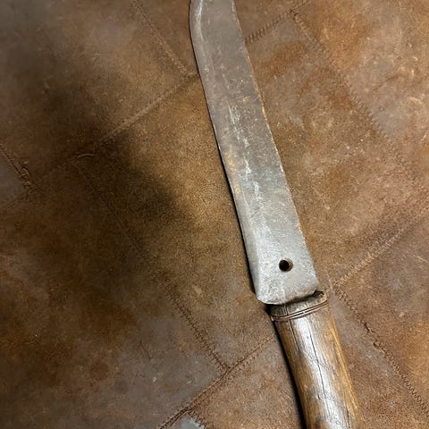 Håndsag av metallmerket Steigo, laget rundt 1930-tallet. Den ble brakt til Australia av Orion Wenhrynowycz da han emigrerte til Australia i 1948. Orion emigrerte til Australia med sin kone, Tatiana, fra Ukraina via en internt fordrevne leir i Tyskland etter andre verdenskrig. De ankom Melbourne med skipet «Wooster Victory».