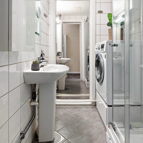 Vaskemaskin god stand. Komfyr første plata på høyre side virker ikke. Ellers alt annet virker. Det er tapet på glass på ovnen.