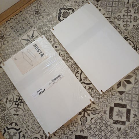 To pene hylleplater i hvit slitesterk overflate med bredde 47,5 og dybde 33,5cm.