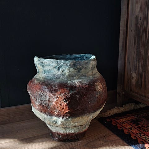 Materialet er enkel keramikk (ikke sølv eller gull), men designet er sjarmerende og håndverksinspirert. Ligner på stilen fra Caltagirone, men jeg kan ikke garantere opprinnelsen.