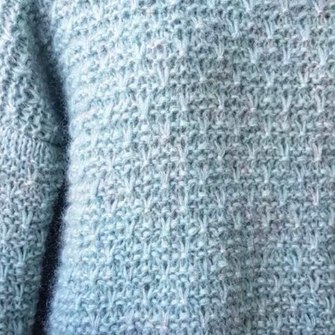 Tilstand? Pent brukt. Løst strikket så forbehold om nupper og løse tråder/masker. Er ingen strikker så kan ikke si noe om strikkekvaliteten. Merk at ribben nederst på hals, hem og armer er trang, Gir en fin posete effekt, men har ikke sjans til å få trukket ribben over hoftene. Skal det sminkes og males må genseren på først, såvidt jeg får den over hodet. Pris justert.