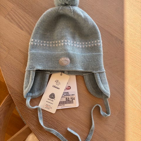 Helt ny Lillelam blå tykk ullue str 36-38 (nyfødt). Ny pris 399.