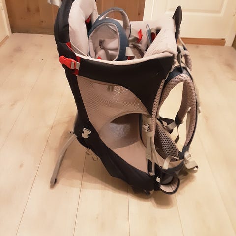 Fint brukt bæremeis brukt på eventyr i nærområdet. Mange praktiske lommer for å få med seg alt man trenger. Kan sende flere bilder på forespørsel. Er også lite speil i ene hoftelommen, sol/ vindskjerming og regntrekk