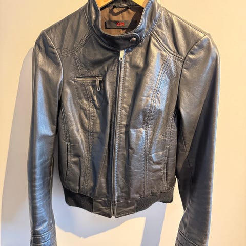 Flott skinnjakke fra australske Emu. Jakken ble kjøpt i Perth en gang mellom 2007 og 2010. Liten flekk på venstre bryst. Har ikke prøvd å fjerne den. Se bilde.
