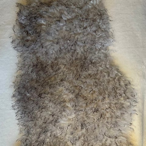 Nydelige gråblå saueskinnsfeller selges.