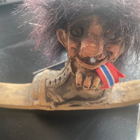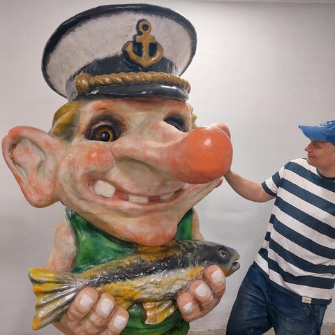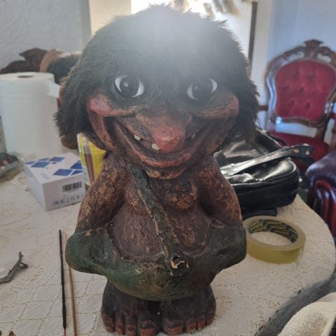 Troll som opprinnelig er laget av kunstner Tor Olaf Lunde til salgs. Trollet er 2,17 meter høyt og laget i betong. Vekten er ukjent. Kjøper må ordne kranbil og henting.