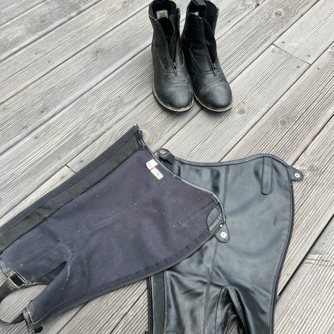 Leggchaps str. 8-10 år. Jodhpurs str. 32.