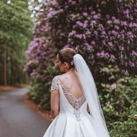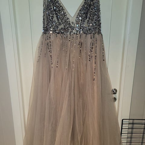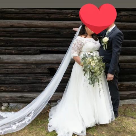 Nydelig kjole med tilbehør selges. Slør, veske, tiara og sko i str. 40. Selges alt samlet.