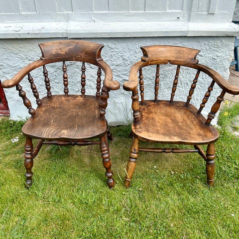 Stolene har detaljer som fine dreide ben og er plassbesparende rundt bordet.