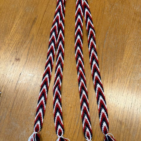 Lang med knute: skjær/klipp av knuten og du har ca. 60cm tau.
