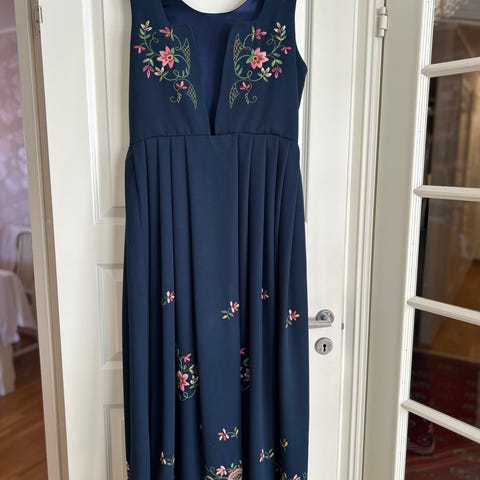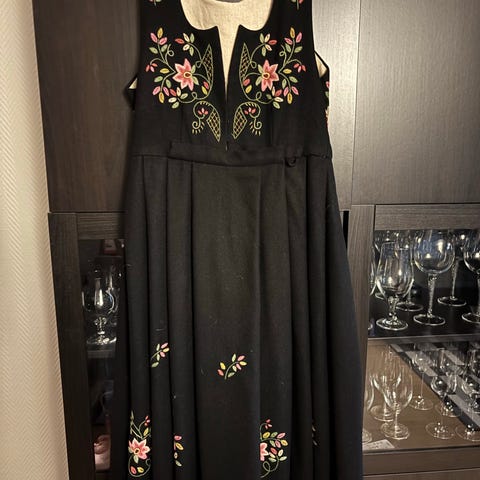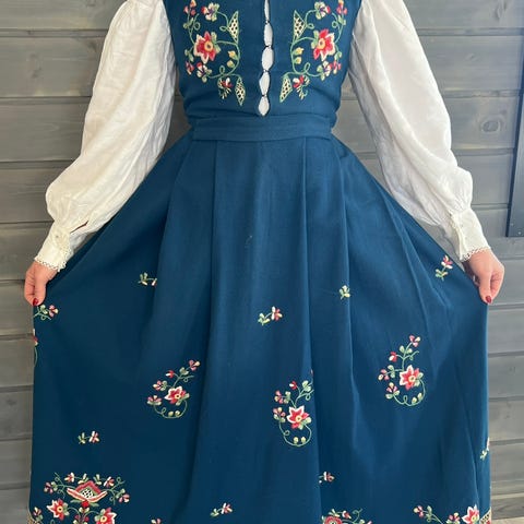 Helt ny Lundebybunad !!!Lundeby bunad i blå ullstoff ,nydelig håndbrodert og montert .Kan forlenges i bunnen ca 2-3 cm, og det er også mulig å utvide sidene med 2-4 cm på hver side. Bunaden følger med veske og nupereller skjorte.