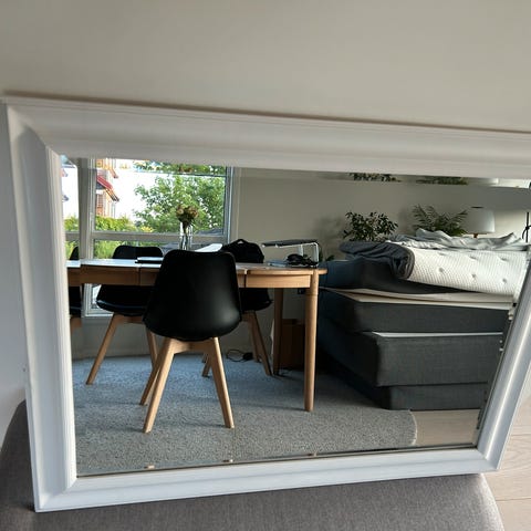 Et enkelt speil med ramme som kan males om man ønsker det.