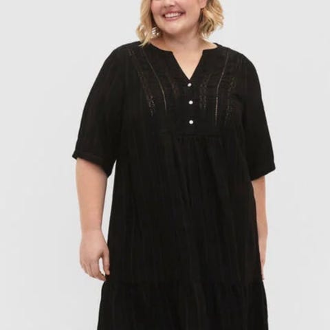 Helt ny mørkeblå strikkekjole /lang genser, fra Zizzi i str m. Tilsvarer xl- xxl. 80 % viskose og 20%polyamid.