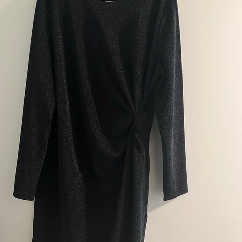 Ny kjole med puffermer og glidelås i siden, selges grunnet feil størrelse. Fra Cider, størrelse XXL / 44. Ganske stretchy i bysten, splitt ca opp til låret på venstre side (er selv 170 høy) . 100% polyester
