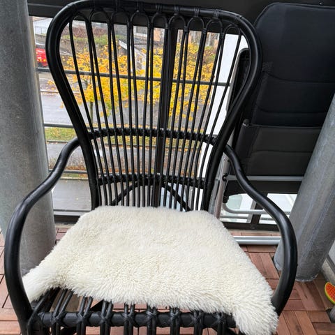 En veldig fin stol selges veldig billig. Beste stolen å sitte i, god kvalitet - men en flekk. Bør trekkes om eller at man har en pute der.