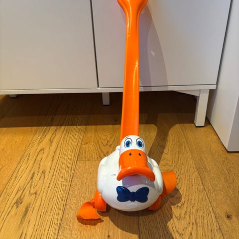Begge virker fint. Krokodillen: trykk ned på toppen så kjører den av gårde. Sneglen: beveger på seg når man holder tauet og går av gårde. Den er i tre. Den har fått litt svertesopp på seg fordi den har stått litt ute i regnet. Mulig det går bort med en vask