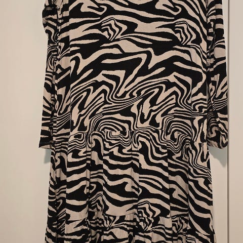 Tøff lang kjole fra HM i svart og offwhite i str.M. Lite brukt så fremstår som ny.