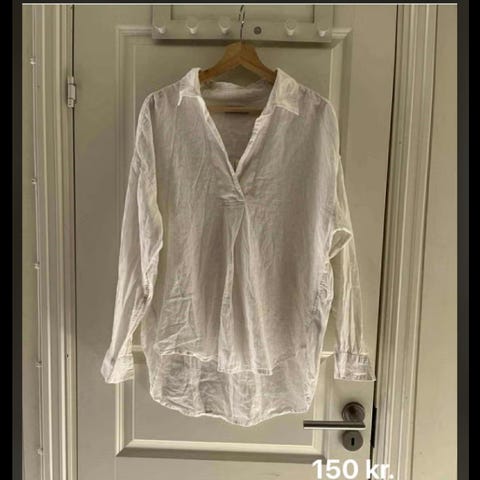 Selger skjorte fra STAY som er brukt kun en gang. Den er hvit med blomstrete mønater i grønt og rosa.