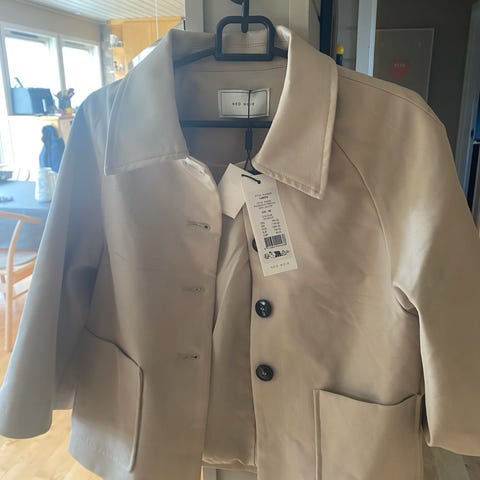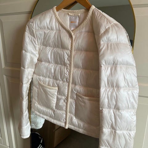 Vattert jakke i off white farge som passer det meste. Kan brukes både ute og inne.
