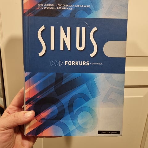 Selger boken "Sinus Forkurs". Man ser at boken er brukt. Omslaget er slitt, men sidene inni er helt fine.